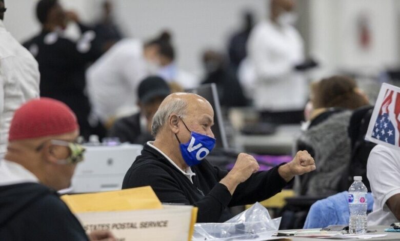 يواصل المرشح الديمقراطي للرئاسة الأمريكية، جو بايدن، التقدم على منافسه الجمهوري والرئيس المنتهية ولايته دونالد ترامب، في تصويت الولايات الأساسية وذلك بعد طعون واعتراضات تقدم بها الأخير. وحتى صباح الجمعة، استمر فرز الأصوات الانتخابية، في حين حصد بايدن 264 صوتاً في المجمع الانتخابي، بفوزه في ولاية ميشيغان بـ 16 صوتاً، مقابل 214…