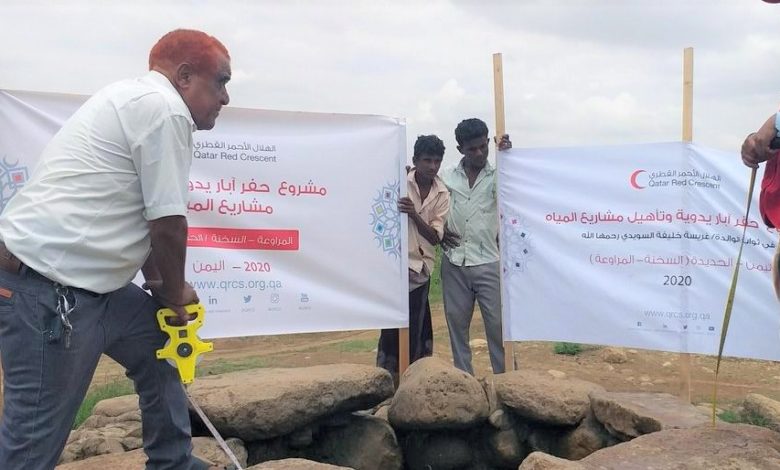 دشن الهلال الأحمر القطري تنفيذ الأعمال المدنية والإنشائية لحفر وتعميق آبار المياه السطحية، وتأهيل مرافق المياه؛ في مديريتي المراوعة والسخنة بمحافظة الحديدة (غرب اليمن). وقال الهلال الأحمر القطري في بيان له، مساء الاثنين: “إن نحو ألف و750 أسرة، تتكون من نحو 12 ألفاً و250 نسمة ستستفيد من هذا المشروع الذي يأتي ضمن مشروع تأهيل آبار المياه…