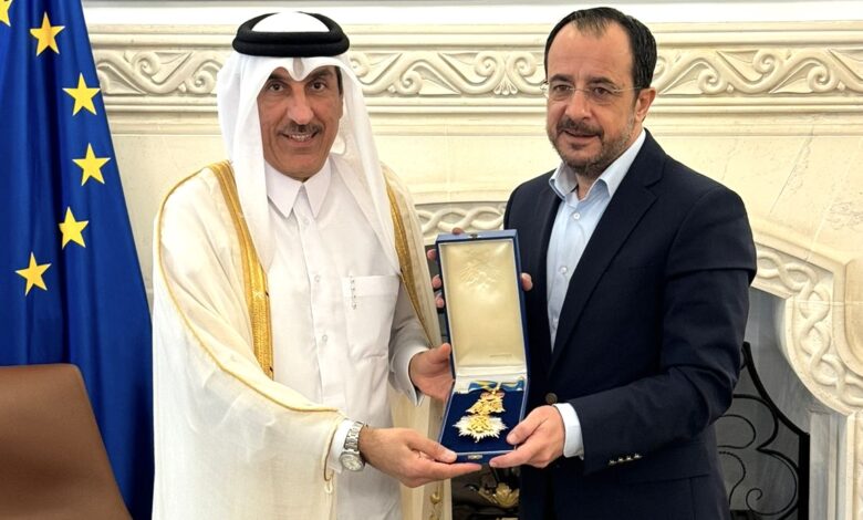 منح فخامة الرئيس الدكتور نيكوس خريستودوليدس رئيس جمهورية قبرص، أعلى وسام شرف في الدولة (مكاريوس الثالث برتبة قائد أكبر) إلى سعادة السيد علي يوسف عبدالرحمن الملا سفير دولة قطر لدى قبرص، وذلك تقديرا لجهوده في دعم وتعزيز العلاقات بين البلدين.وأعرب فخامة الرئيس القبرصي، خلال استقباله سعادة السفير بمناسبة انتهاء فترة عمله، عن…