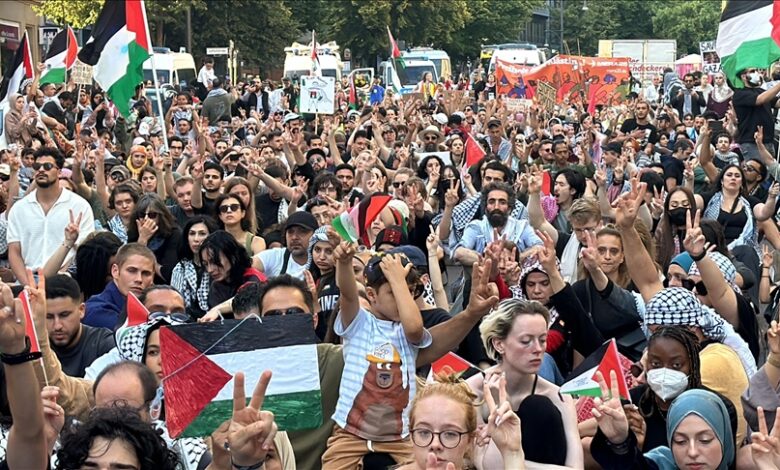 شهدت العديد من المدن الأوروبية، مظاهرات داعمة الشعب الفلسطيني تنديدا بالهجمات الإسرائيلية على قطاع غزة. وفي العاصمة الألمانية برلين، أوقفت قوات الأمن 20 متظاهرا على الأقل خلال مظاهرة شارك فيها الآلاف للتضامن مع الشعب الفلسطيني. وردد المتظاهرون هتافات من قبيل “إسرائيل تقتل الأطفال”، “إسرائيل دولة إرهابية”، “وقف إطلاق النار الآن”، “ألمانيا تمول،…