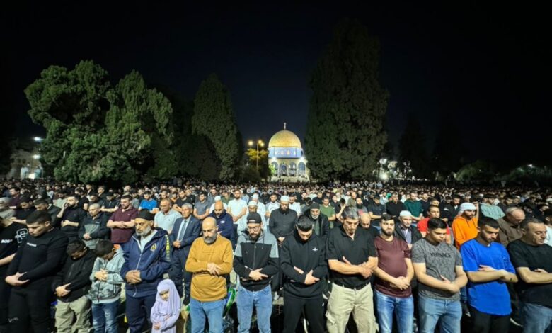 أدى 45 ألف مصل صلاتي العشاء والتراويح في رحاب المسجد الأقصى المبارك بالقدس المحتلة، رغم قيود وتضييقات سلطات الاحتلال الإسرائيلي.وأفادت دائرة الأوقاف الإسلامية في القدس، بأن 45 ألفا أدوا صلاتي العشاء والتراويح في المسجد الأقصى ومصلياته المسقوفة.وانتشرت قوات الاحتلال عند أبواب المسجد الأقصى، وفي البلدة القديمة، وفتشت عددا من الشبان، ودققت في…
