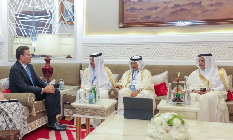 اجتمع سعادة الشيخ خليفة بن جاسم بن محمد آل ثاني رئيس غرفة قطر، اليوم، مع سعادة السيد أحمد الصفدي رئيس مجلس النواب الأردني، وذلك على هامش “منتدى الدوحة 2023”.وتم خلال الاجتماع استعراض علاقات التعاون في المجالات التجارية والاقتصادية والاستثمارات المتبادلة، والدور الذي يلعبه القطاع الخاص في تعزيز التبادل التجاري.وأشاد رئيس مجلس النواب…