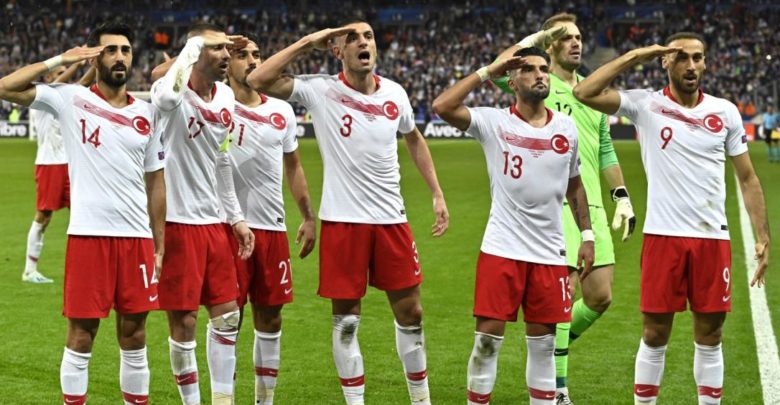 اتهم الرئيس رجب طيب أردوغان الاتحاد الأوروبي لكرة القدم (يويفا) بانتهاج “سلوك تمييزي” نحو تركيا لفتح تحقيق تأديبي بعد التحية العسكرية التي أداها اللاعبون الأتراك أثناء المباريات التي أقيمت تزامنا مع عملية “نبع السلام” التي قام بها الجيش التركي في شمالي سوريا.وقال أردوغان -خلال مؤتمر صحفي في أنقرة- “الرياضيون الذين يمثلون بلادنا…