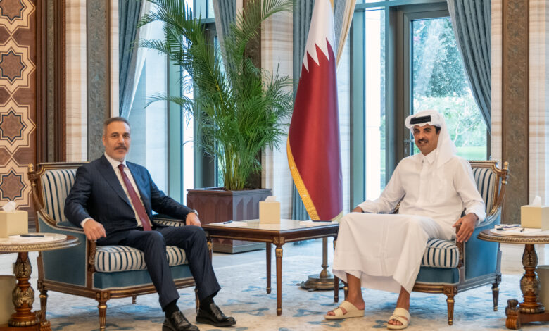 استقبل حضرة صاحب السمو الشيخ تميم بن حمد آل ثاني أمير البلاد المفدى، اليوم بمكتبه في قصر لوسيل، سعادة السيد هاكان فيدان وزير خارجية الجمهورية التركية الشقيقة. وجرى خلال المقابلة بحث تطورات الأوضاع في المنطقة، في ظل استمرار العدوان الإيراني على دولة قطر وعدد من دول المنطقة، وما يسببه من تصعيد يهدد…