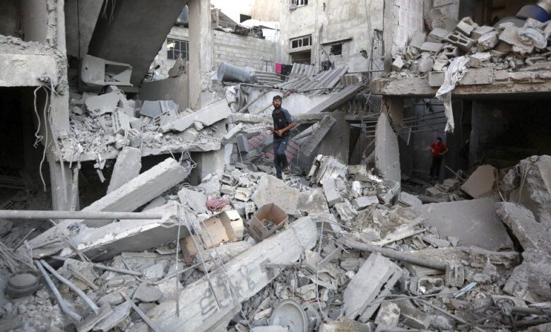 استشهد 39 فلسطينيا، الليلة، وأصيب العشرات جراء غارات وعمليات قصف مكثفة شنها جيش الاحتلال الإسرائيلي على عدة مناطق في شمال ووسط وجنوبي قطاع غزة. وأفادت مصادر طبية باستشهاد 13 مواطنا وإصابة آخرين في قصف إسرائيلي استهدف شقتين في عمارة سكنية قرب مفترق السامر وسط مدينة غزة، فيما استشهدت أم وابنها جراء قصف…