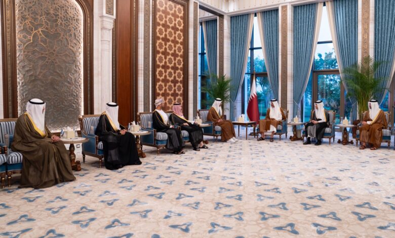 استقبل حضرة صاحب السمو الشيخ تميم بن حمد آل ثاني أمير البلاد المفدى، في مكتبه بقصر لوسيل اليوم، أصحاب السمو والسعادة وزراء خارجية دول مجلس التعاون لدول الخليج العربية، وذلك بمناسبة زيارتهم للبلاد للمشاركة في الاجتماع الاستثنائي التاسع والأربعين للمجلس الوزاري لدول مجلس التعاون الخليجي. وفي بداية المقابلة، أعرب سمو الأمير المفدى…
