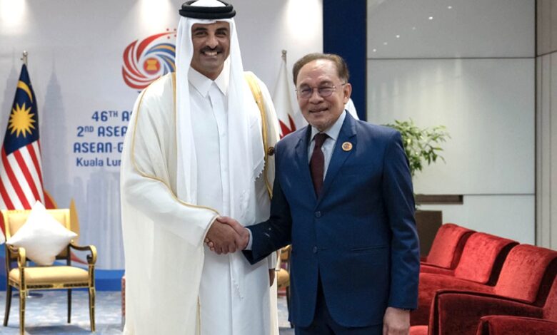 التقى حضرة صاحب السمو الشيخ تميم بن حمد آل ثاني أمير البلاد المفدى، دولة الدكتور أنور إبراهيم رئيس وزراء ماليزيا، وذلك على هامش القمة الثانية لمجلس التعاون لدول الخليج العربية ورابطة دول جنوب شرق آسيا (آسيان)، المنعقدة في مركز المؤتمرات بالعاصمة الماليزية كوالالمبور. جرى خلال اللقاء استعراض علاقات التعاون الثنائي بين البلدين…