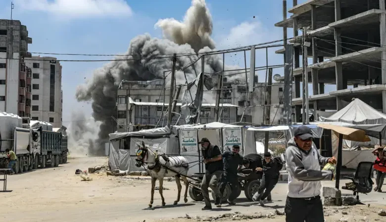 قتل الجيش الإسرائيلي 54 فلسطينيا على الأقل، في سلسلة غارات مكثفة منذ امس، استهدفت مناطق عدة في قطاع غزة، ضمن الإبادة الجماعية التي يرتكبها للشهر العشرين. ووفق مصادر طبية، شنت الطائرات الإسرائيلية سلسلة غارات على منازل وخيام تؤوي نازحين وتجمعات مدنيين في شمال ووسط وجنوب القطاع، ما أدى إلى سقوط ضحايا وارتكاب…