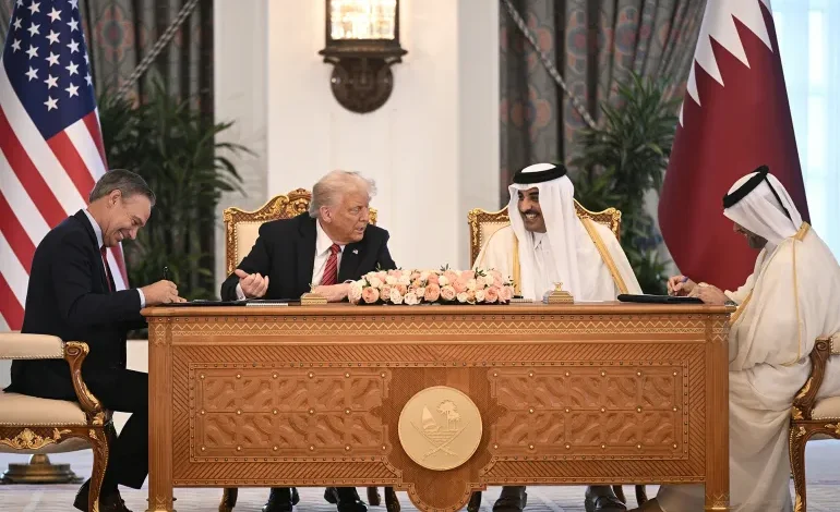 وقعت قطر والولايات المتحدة، الأربعاء، اتفاقية لشراء 160 طائرة بوينغ بأكثر من 200 مليار دولار، بحضور الأمير تميم بن حمد آل ثاني والرئيس دونالد ترامب. جاء ذلك خلال مراسم توقيع عدة اتفاقيات ومذكرات تفاهم بين البلدين عقب مباحثات بين الأمير تميم والرئيس ترامب. وبعد التوقيع في الديوان الأميري القطري بالدوحة، قال ترامب:…