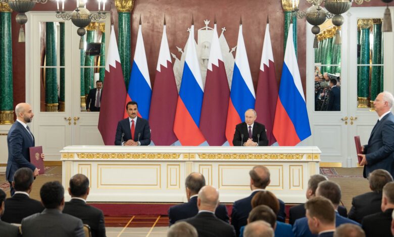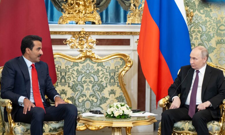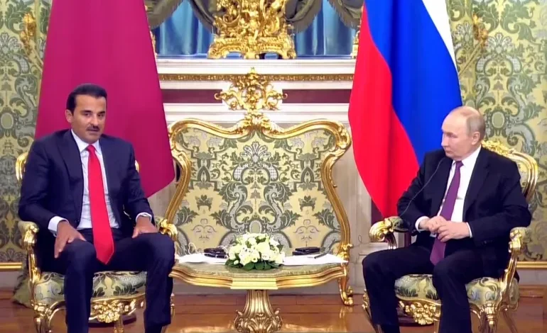 بحث حضرة صاحب السمو الشيخ تميم بن حمد آل ثاني أمير البلاد المفدى، وفخامة الرئيس فلاديمير بوتين رئيس روسيا الاتحادية الصديقة، سبل تعزيز علاقات التعاون الثنائي بين البلدين في مختلف المجالات. كما بحث سمو الأمير وفخامة الرئيس الروسي دعم التعاون والاستثمار في عدد من القطاعات الحيوية والسبل الكفيلة بتعزيزها وتطويرها، لا سيما…