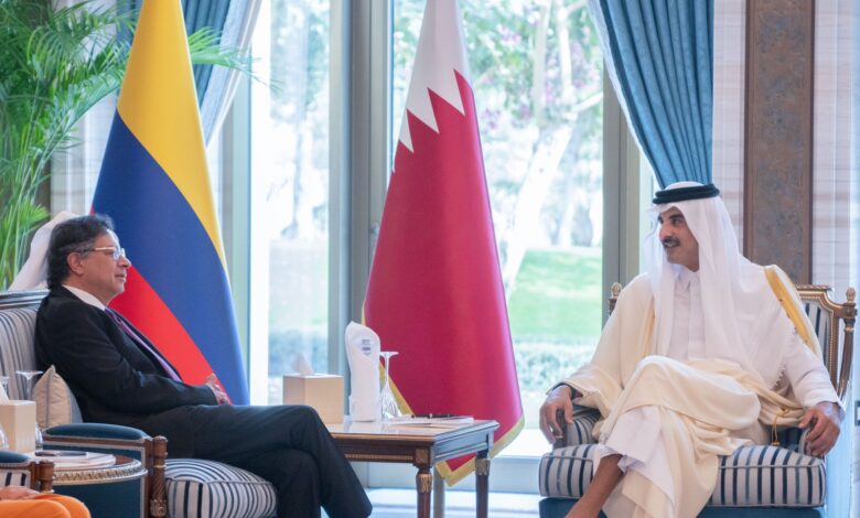 عقد حضرة صاحب السمو الشيخ تميم بن حمد آل ثاني أمير البلاد المفدى، وفخامة الرئيس غوستافو بيترو رئيس جمهورية كولومبيا الصديقة، جلسة مباحثات رسمية اليوم بمكتبه في قصر لوسيل. وفي بداية الجلسة، رحب سمو الأمير المفدى بفخامة الرئيس والوفد المرافق له، متمنيا لهم طيب الإقامة. وأكد سموه على أهمية العلاقات بين البلدين،…