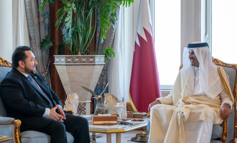 تسلم حضرة صاحب السمو الشيخ تميم بن حمد آل ثاني أمير البلاد المفدى، في مكتبه بالديوان الأميري صباح اليوم، أوراق اعتماد سبعة سفراء جدد لدى الدولة. فقد تسلم سموه أوراق اعتماد كل من سعادة السيد محمد فيصل رزالي سفير ماليزيا، وسعادة السيدة سيديبي ديديو عمثان سفيرة جمهورية مالي، وسعادة السيد ميلتون إدواردو…