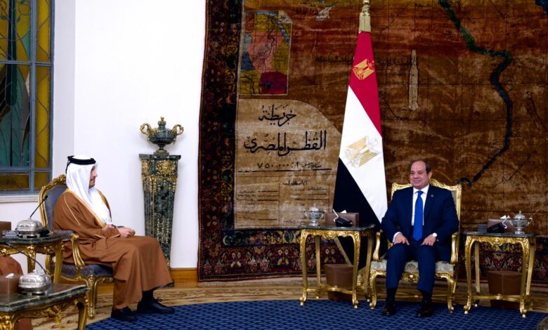 استقبل فخامة الرئيس عبدالفتاح السيسي رئيس جمهورية مصر العربية، اليوم، معالي الشيخ محمد بن عبدالرحمن بن جاسم آل ثاني رئيس مجلس الوزراء وزير الخارجية. وفي بداية المقابلة، نقل معالي رئيس مجلس الوزراء وزير الخارجية، تحيات حضرة صاحب السمو الشيخ تميم بن حمد آل ثاني أمير البلاد المفدى، إلى فخامة رئيس جمهورية مصر…