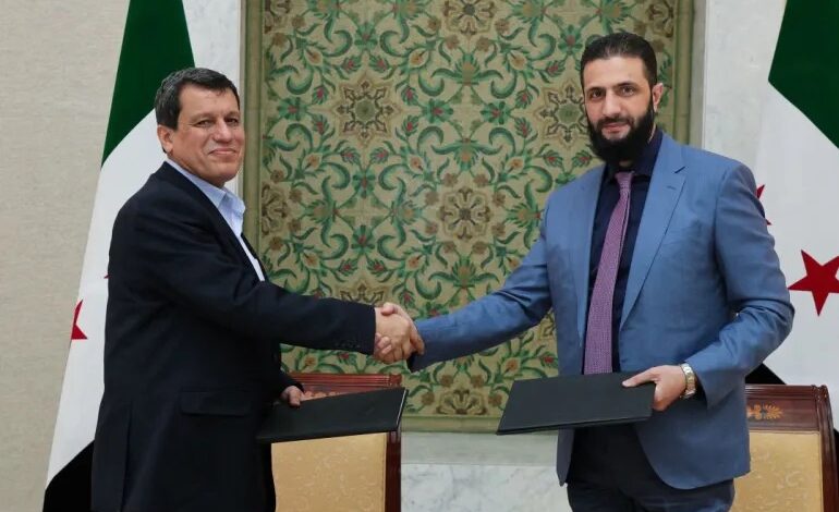 تبحث السلطات السورية في دمشق، اليوم الأحد، مع قائد قوات سوريا الديمقراطية (قسد) مظلوم عبدي عملية دمج مقاتلي المجموعة في صفوف الجيش الوطني، وفق ما أعلنت قسد في بيان، وذلك بعيد انتهاء مهلة تطبيق اتفاق وقعه الطرفان منذ أشهر. ونقلت وكالة الصحافة الفرنسية، الشهر الماضي، عن مسؤول كردي أن قسد تسلمت مقترحا مكتوبا من دمشق، نصّ…