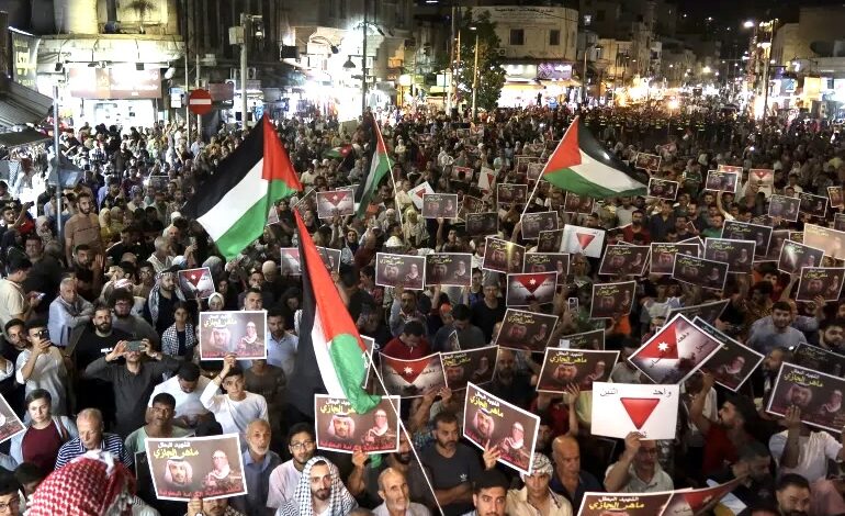 شهدت العاصمة الأردنية عمان مظاهرة للمطالبة باستعادة جثمان ماهر الجازي الحويطات، منفذ عملية جسر الملك حسين، التي قتل فيها 3 إسرائيليين. وطالب المتظاهرون بوقف الحرب الإسرائيلية على قطاع غزة ودعم المقاومة، كما طالبوا، وفقا لمراسل الجزيرة نت تامر الصمادي الذي تابع المظاهرة، باستعادة اثنين من المواطنين الأردنيين لا يزالان يخضعان للتحقيق لدى…