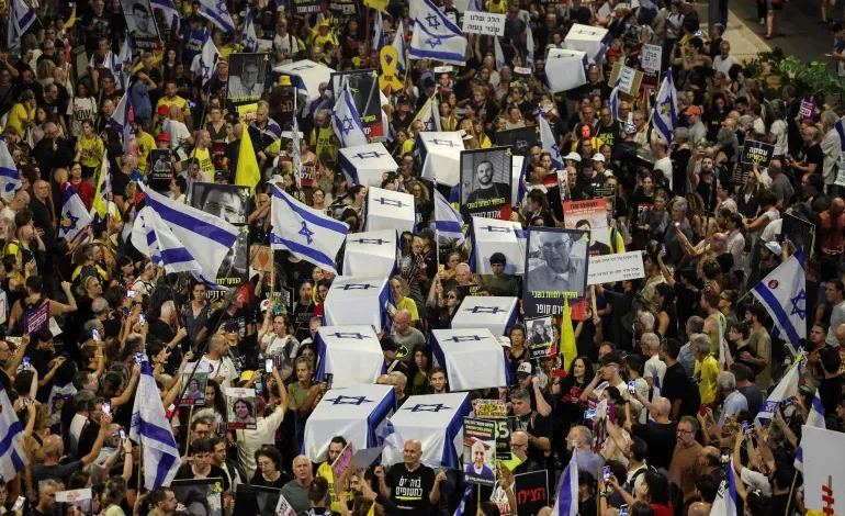 تواصلت المظاهرات الحاشدة في عدد من المدن الإسرائيلية للمطالبة بإيقاف الحرب وصفقة تبادل للأسرى.وقالت هيئة عائلات الأسرى إن نصف مليون متظاهر يشاركون في مظاهرة تل أبيب، بينما يشارك أكثر من 250 ألفا في باقي أنحاء إسرائيل، وهي بذلك تعتبر “أضخم مظاهرات في تاريخ إسرائيل”، وفق الهيئة.وأفادت مراسلة الجزيرة بخروج مظاهرة حاشدة مساء…