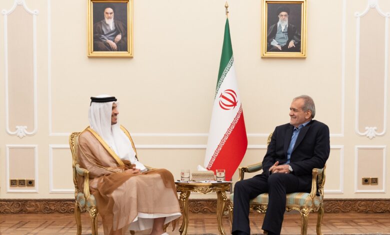 استقبل فخامة الرئيس الدكتور مسعود بزشكيان رئيس الجمهورية الإسلامية الإيرانية، اليوم، معالي الشيخ محمد بن عبدالرحمن بن جاسم آل ثاني رئيس مجلس الوزراء وزير الخارجية.وفي بداية المقابلة، نقل معالي رئيس مجلس الوزراء وزير الخارجية، تحيات حضرة صاحب السمو الشيخ تميم بن حمد آل ثاني أمير البلاد المفدى، لفخامة الرئيس الإيراني وتمنيات سموه…