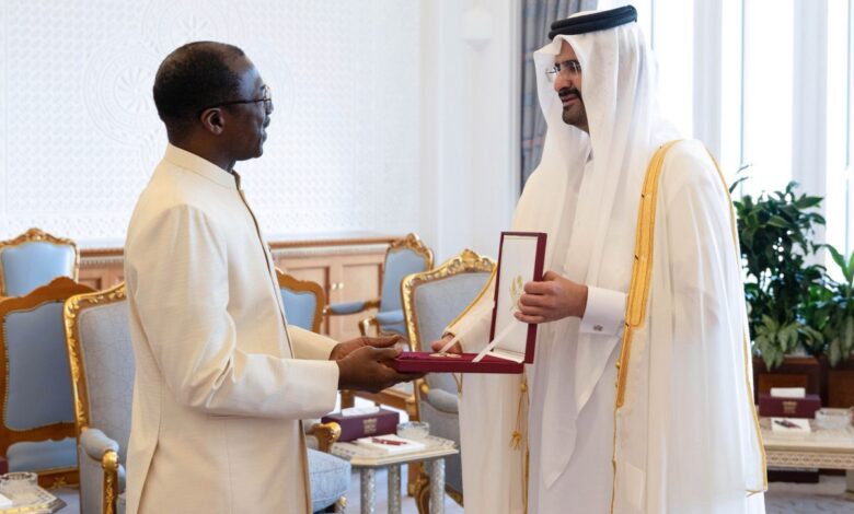 استقبل سمو الشيخ عبدالله بن حمد آل ثاني نائب الأمير، في مكتبه بالديوان الأميري صباح اليوم، سعادة السيد فوداي مولانق سفير جمهورية غامبيا، وذلك للسلام على سموه بمناسبة انتهاء فترة عمله في البلاد. ومنح سمو نائب الأمير، سفير غامبيا وسام الوجبة تقديراً لدوره في دعم وتعزيز العلاقات الثنائية، متمنياً له التوفيق فيما…