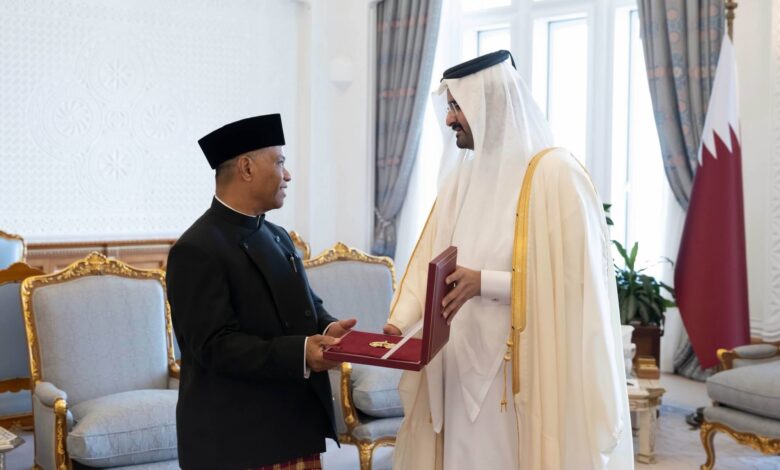 استقبل سمو الشيخ عبدالله بن حمد آل ثاني نائب الأمير، في مكتبه بالديوان الأميري صباح اليوم، سعادة السيد رضوان حسن سفير جمهورية إندونيسيا لدى الدولة، وذلك للسلام على سموه بمناسبة انتهاء فترة عمله في البلاد. وقد منح سمو نائب الأمير، وسام الوجبة للسفير الإندونيسي تقديراً لمساهمته في تعزيز العلاقات الثنائية بين البلدين،…