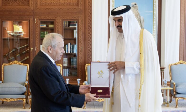 استقبل حضرة صاحب السمو الشيخ تميم بن حمد آل ثاني أمير البلاد المفدى، في مكتبه بالديوان الأميري صباح اليوم، سعادة السيد منير عبدالله غنام سفير دولة فلسطين الشقيقة، وذلك للسلام على سموه بمناسبة انتهاء فترة عمله في البلاد.وقد منح سمو الأمير وسام الوجبة للسفير الفلسطيني تقديرا لدوره في المساهمة في تعزيز العلاقات…