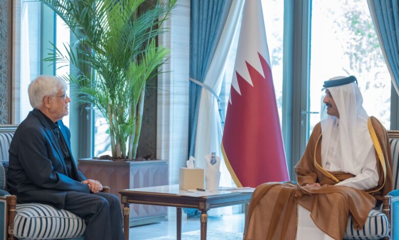استقبل حضرة صاحب السمو الشيخ تميم بن حمد آل ثاني أمير البلاد المفدى، اليوم في مكتبه بقصر لوسيل، سعادة الدكتور محمد رضا عارف النائب الأول لرئيس الجمهورية الإسلامية الإيرانية، والوفد المرافق، بمناسبة زيارته للبلاد.جرى خلال المقابلة استعراض العلاقات الثنائية بين البلدين الصديقين وسبل تطويرها وتعزيزها، إضافة إلى آخر التطورات الإقليمية والدولية.