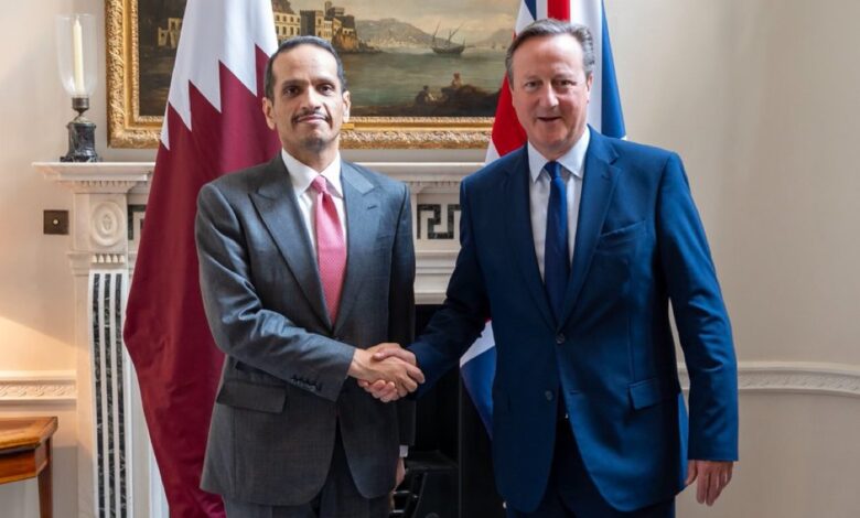 اجتمع معالي الشيخ محمد بن عبدالرحمن بن جاسم آل ثاني، رئيس مجلس الوزراء وزير الخارجية، اليوم في لندن، مع سعادة السيد ديفيد كاميرون، وزير الخارجية بالمملكة المتحدة.جرى خلال الاجتماع، استعراض علاقات التعاون بين البلدين وسبل دعمها وتعزيزها، لا سيما في مجال الاستثمار، ومناقشة خطورة الأوضاع في قطاع غزة والأراضي الفلسطينية المحتلة، وآخر…
