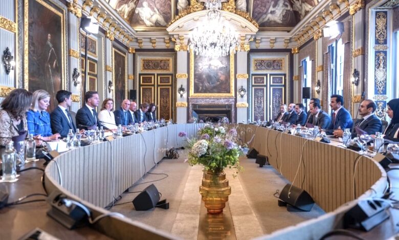 عقد حضرة صاحب السمو الشيخ تميم بن حمد آل ثاني أمير البلاد المفدى، ودولة السيد مارك روته رئيس وزراء المملكة الهولندية الصديقة، جلسة مباحثات رسمية، وذلك في مقر رئاسة الوزراء بينن هوف في مدينة لاهاي اليوم.وفي بداية الجلسة، رحب دولة رئيس الوزراء الهولندي، بسمو الأمير المفدى والوفد المرافق، وبالزيارة الرسمية الأولى لسموه…