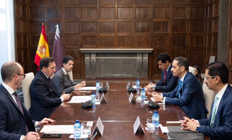 اجتمع معالي الشيخ محمد بن عبدالرحمن بن جاسم آل ثاني رئيس مجلس الوزراء وزير الخارجية ،اليوم في مدريد، مع سعادة السيد خوسيه مانويل ألباريس وزير الشؤون الخارجية والاتحاد الأوروبي والتعاون بمملكة إسبانيا.جرى خلال الاجتماع، استعراض علاقات التعاون بين البلدين وسبل دعمها وتعزيزها، ومناقشة خطورة الأوضاع في قطاع غزة والأراضي الفلسطينية المحتلة، وآخر…