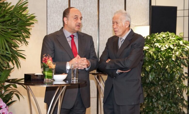 التقى سعادة الدكتور خالد بن محمد العطية نائب رئيس مجلس الوزراء ووزير الدولة لشؤون الدفاع، سعادة الدكتور آنغ اينغ هين وزير الدفاع بجمهورية سنغافورة، وذلك على هامش مشاركة سعادته في حوار شانغريلا الذي ينظمه المعهد الدولي للدراسات الاستراتيجية في سنغافورة.جرى خلال اللقاء مناقشة المواضيع ذات الاهتمام المشترك واستعراض علاقات التعاون بين الجانبين،…
