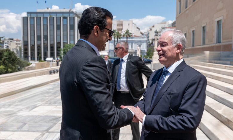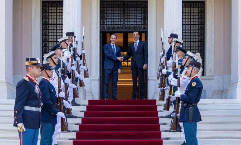 عقد حضرة صاحب السمو الشيخ تميم بن حمد آل ثاني أمير البلاد المفدى، ودولة السيد كيرياكوس ميتسوتاكيس رئيس وزراء الجمهورية اليونانية الصديقة، جلسة مباحثات رسمية، وذلك في قصر ماكسيموس بالعاصمة أثينا اليوم.وفي بداية الجلسة، رحب دولة رئيس الوزراء اليوناني، بسمو الأمير المفدى والوفد المرافق، وبالزيارة الرسمية الأولى لسموه إلى اليونان، التي تعكس…