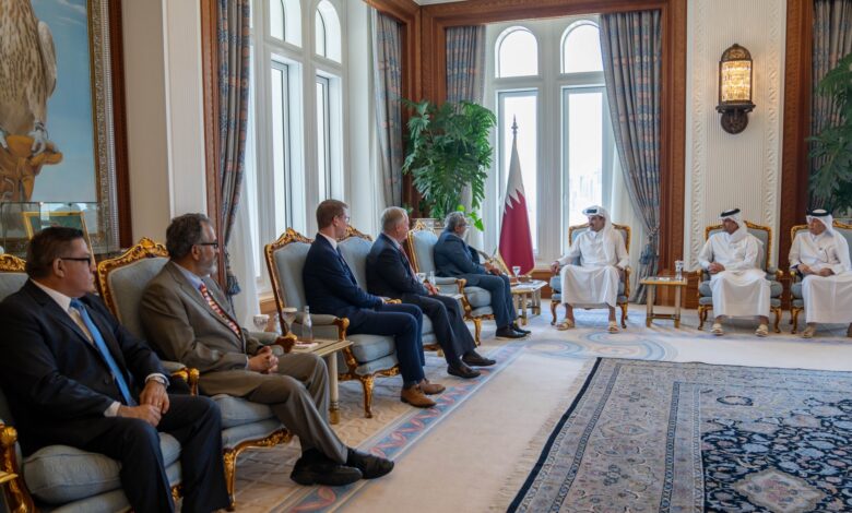 استقبل حضرة صاحب السمو الشيخ تميم بن حمد آل ثاني أمير البلاد المفدى، بمكتبه في الديوان الأميري صباح اليوم، عددا من أصحاب السعادة أعضاء الكونغرس بالولايات المتحدة الأمريكية الصديقة، بمناسبة زيارتهم للبلاد.فقد استقبل سموه كلا من النائب سالود كارباجال، والنائب ديف جويس، والنائب آمي بيرا، والنائب ديريك كيلمر، والنائب خوان فارغاس، والنائب…