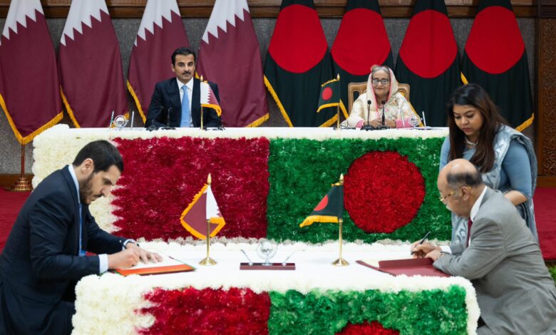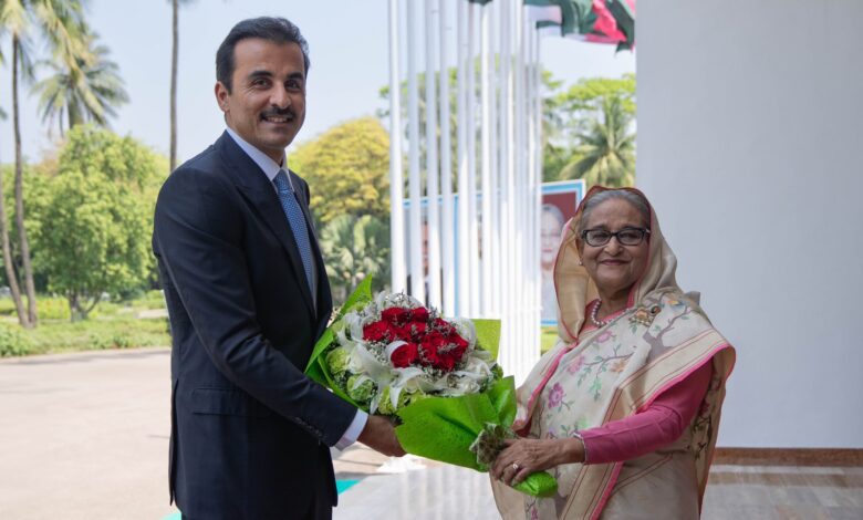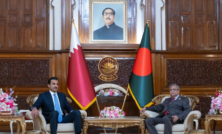 أعرب حضرة صاحب السمو الشيخ تميم بن حمد آل ثاني أمير البلاد المفدى، عن سعادته بزيارة جمهورية بنغلاديش الصديقة، والاجتماع مع فخامة الرئيس محمد شهاب الدين. كما أوضح سموه أن المباحثات الموسعة مع دولة السيدة شيخة حسينة واجد رئيسة الوزراء ستسهم في تعزيز الشراكات الثنائية في مختلف المجالات.وقال سمو الأمير المفدى، في…