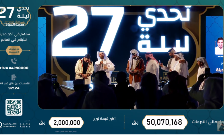 نجح “تحدي ليلة 27” الذي أطلقته مؤسسة “قطر الخيرية” في إطار حملتها الرمضانية «ويؤثرون»في جمع أكثر من 50 مليون ريال، في غضون 3 ساعات فقط ، وذلك في التحدي المخصص لدعم بناء أكبر مدينة أيتام في العالم (مدينة الحياة للأيتام).وأقيمت فعالية (تحدي ليلة 27) في ساحة الحكمة بالحي الثقافي «كتارا»، بمشاركة كل من…
