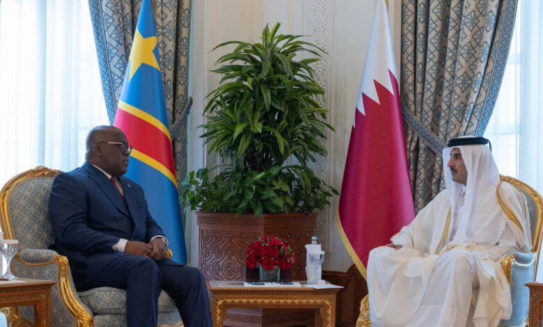 عقد حضرة صاحب السمو الشيخ تميم بن حمد آل ثاني أمير البلاد المفدى، وفخامة الرئيس فيليكس تشيسكيدي رئيس جمهورية الكونغو الديمقراطية، جلسة مباحثات رسمية بالديوان الأميري اليوم.وجرى، خلال الجلسة، بحث سبل تعزيز العلاقات الثنائية القائمة بين البلدين الصديقين في مختلف مجالات التعاون، لا سيما في مجالي الاستثمار والاقتصاد.وتبادل سمو الأمير المفدى وفخامة…