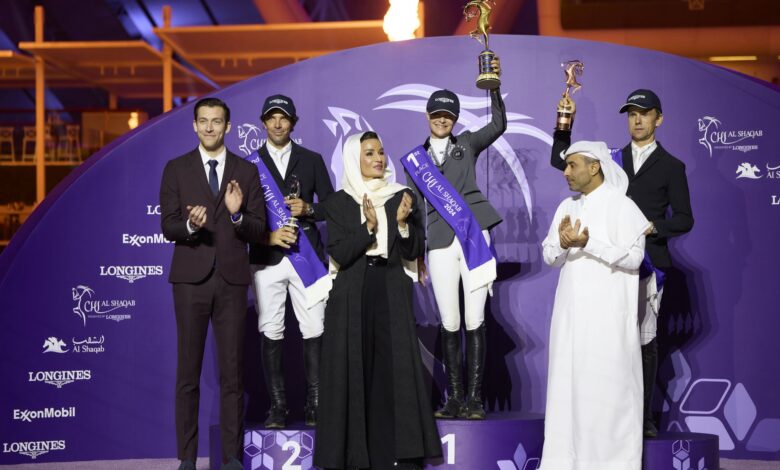 2 توجت صاحبة السمو الشيخة موزا بنت ناصر رئيس مجلس إدارة مؤسسة قطر للتربية والعلوم وتنمية المجتمع، الفائزين بالمراكز الأولى في جولة الجائزة الكبرى لقفز الحواجز التي أقيمت مساء اليوم في ختام منافسات النسخة الـ 11 من بطولة الشقب الدولية للفروسية برعاية لونجين 2024 .وحضر منافسات اليوم عدد من كبار الشخصيات في…