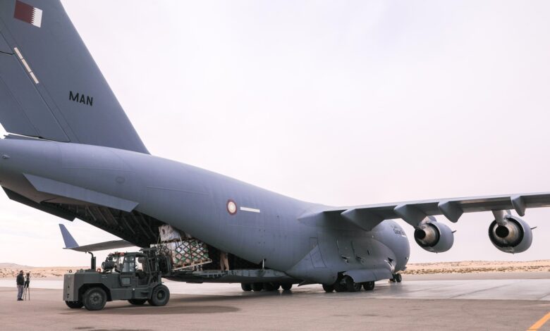 وصلت إلى مدينة العريش في جمهورية مصر العربية الشقيقة، طائرة تابعة للقوات المسلحة القطرية، تحمل 30 طنا من المساعدات، تتضمن مواد غذائية، مقدمة من الهلال الأحمر القطري؛ ليبلغ بذلك مجموع الطائرات 78 طائرة، بإجمالي 2334 طنا من المساعدات. وتأتي هذه المساعدات في إطار مساندة دولة قطر للشعب الفلسطيني الشقيق، ودعمها الكامل له…