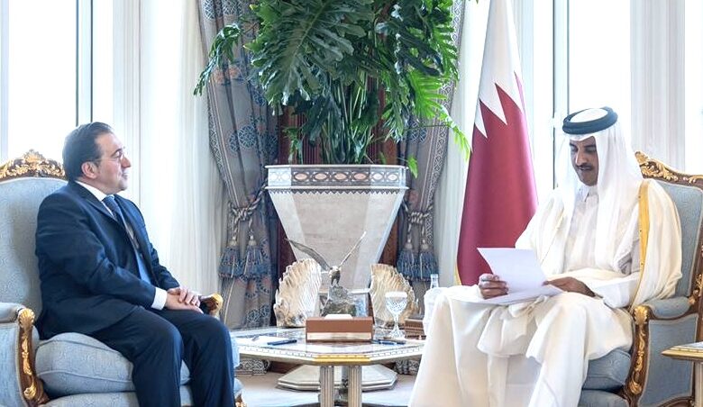 تسلم حضرة صاحب السمو الشيخ تميم بن حمد آل ثاني أمير البلاد المفدى، رسالة خطية من جلالة الملك فيليبي السادس ملك إسبانيا، تتصل بالعلاقات الثنائية، وسبل دعمها وتطويرها. قام بتسليم الرسالة سعادة السيد خوسيه مانويل ألباريس وزير الشؤون الخارجية والاتحاد الأوروبي والتعاون لمملكة إسبانيا، خلال استقبال سمو الأمير له، بمكتبه بالديوان الأميري…