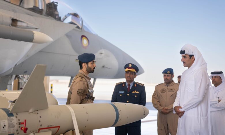دشن حضرة صاحب السمو الشيخ تميم بن حمد آل ثاني أمير البلاد المفدى، جناح الطائرات المقاتلة الاستراتيجية رقم (5) أبابيل (F15 QA)، التابع للقوات الجوية الأميرية القطرية، وذلك بقاعدة العديد الجوية صباح اليوم.وقام سموه بجولة استمع خلالها إلى إيجاز حول مشروع طائرات أبابيل (F15 QA) حديثة الصنع وقدراتها القتالية، وأبرز أساليب التكنولوجيا…