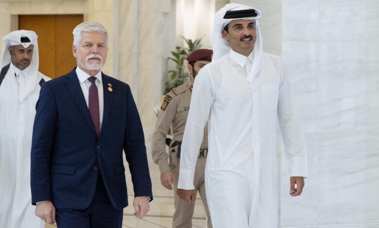 أكد حضرة صاحب السمو الشيخ تميم بن حمد آل ثاني أمير البلاد المفدى أنه بحث مع فخامة الرئيس بيتر بافيل رئيس جمهورية التشيك سبل تطوير التعاون الاقتصادي والتجاري بما ينعكس إيجابيا على البلدين.وقال سموه في منشور عبر حسابه الرسمي على منصة التواصل الاجتماعي /إكس/: “بحثت اليوم مع الرئيس التشيكي بيتر بافيل سبل…