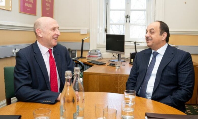 التقى سعادة الدكتور خالد بن محمد العطية نائب رئيس مجلس الوزراء ووزير الدولة لشؤون الدفاع، سعادة السيد جون هيلي وزير الدفاع لحكومة الظل البريطانية في العاصمة البريطانية /لندن/.جرى خلال اللقاء مناقشة المواضيع ذات الاهتمام المشترك واستعراض علاقات التعاون العسكري بين الجانبين وسبل تعزيزها وتطويرها.كما تم خلال اللقاء مناقشة آخر التطورات التي تمر…