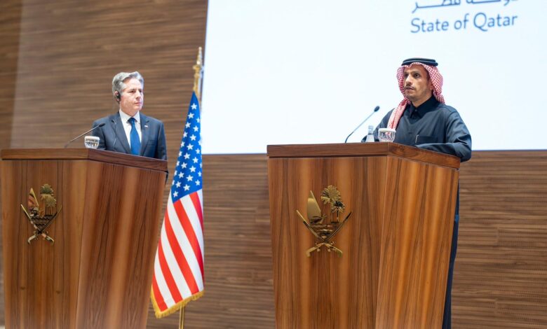 أكد معالي الشيخ محمد بن عبدالرحمن بن جاسم آل ثاني رئيس مجلس الوزراء وزير الخارجية، ضرورة الضغط لوقف إطلاق النار في قطاع غزة، ورفع القيود المفروضة على إيصال المساعدات الإنسانية، باعتبار ذلك انتهاكا صارخا للقانون الدولي الإنساني.وقال معاليه، خلال مؤتمر صحفي عقده اليوم مع سعادة السيد أنتوني بلينكن وزير خارجية الولايات المتحدة…