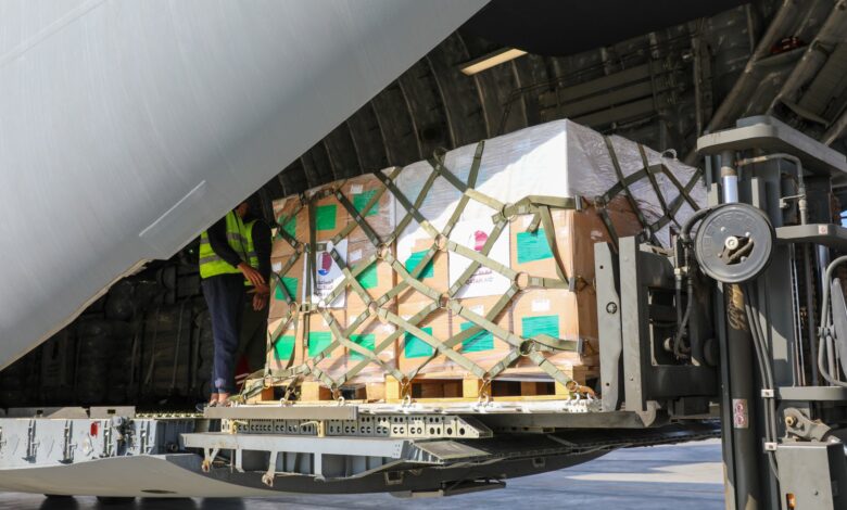 وصلت إلى مدينة العريش في جمهورية مصر العربية الشقيقة، اليوم، طائرة تابعة للقوات المسلحة القطرية، تحمل 37 طنا من المساعدات، تتضمن مستلزمات إيواء ومواد غذائية، مقدمة من صندوق قطر للتنمية، تمهيدا لنقلها إلى غزة، ليبلغ بذلك مجموع الطائرات 58 طائرة بإجمالي 1814 طنا من المساعدات.وتأتي هذه المساعدات في إطار مساندة دولة قطر…
