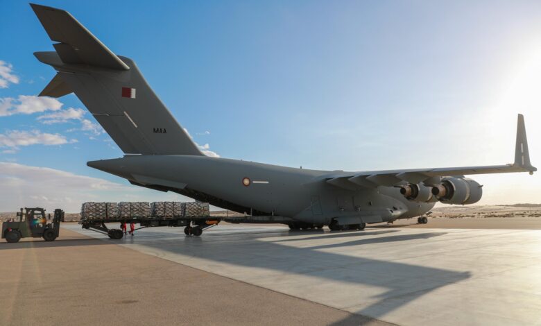توجهت إلى مدينة العريش في جمهورية مصر العربية الشقيقة، اليوم، طائرة تابعة للقوات المسلحة القطرية تحمل 20 طنا من المساعدات، تتضمن مواد غذائية وطبية مقدمة من صندوق قطر للتنمية، والهلال الأحمر القطري، وقطر الخيرية، تمهيدا لنقلها إلى غزة، ليبلغ بذلك مجموع الطائرات 47 طائرة، بإجمالي 1501 طن من المساعدات.وتأتي هذه المساعدات في…