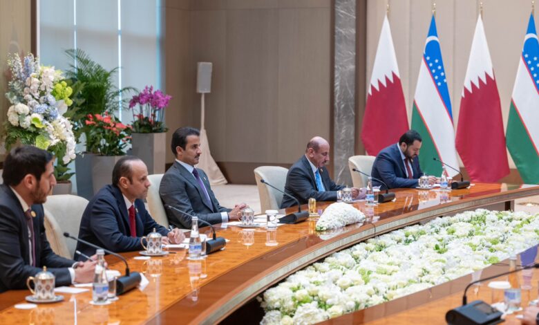 عقد حضرة صاحب السمو الشيخ تميم بن حمد آل ثاني أمير البلاد المفدى، وفخامة الرئيس شوكت ميرضيائيف رئيس جمهورية أوزبكستان الصديقة، جلسة مباحثات رسمية بمركز المؤتمرات في العاصمة طشقند اليوم.وتم، خلال الجلسة، بحث أوجه التعاون بين البلدين الصديقين، لا سيما الإعلان عن الارتقاء بمستوى العلاقات بينهما إلى المستوى الاستراتيجي، بما يخدم المصالح…