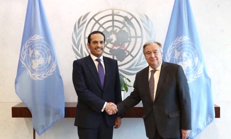 تلقى معالي الشيخ محمد بن عبدالرحمن بن جاسم آل ثاني رئيس مجلس الوزراء وزير الخارجية، اليوم، اتصالا هاتفيا من سعادة السيد أنطونيو غوتيريش الأمين العام للأمم المتحدة.جرى خلال الاتصال استعراض آخر تطورات الأوضاع في الأراضي الفلسطينية المحتلة، وسبل خفض التصعيد ووقف إطلاق النار في قطاع غزة.وأكد معاليه، خلال الاتصال، ضرورة فتح ممرات…
