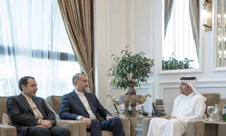 استقبل معالي الشيخ محمد بن عبدالرحمن بن جاسم آل ثاني رئيس مجلس الوزراء وزير الخارجية، اليوم، سعادة الدكتور حسين أمير عبداللهيان وزير الخارجية بالجمهورية الإسلامية الإيرانية، الذي يزور البلاد حاليا.جرى، خلال المقابلة، استعراض آخر تطورات الأوضاع في الأراضي الفلسطينية المحتلة، وسبل خفض التصعيد ووقف إطلاق النار في قطاع غزة.