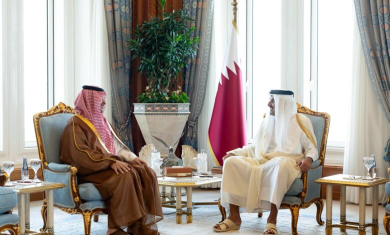 استقبل حضرة صاحب السمو الشيخ تميم بن حمد آل ثاني أمير البلاد المفدى، صباح اليوم في مكتبه بالديوان الأميري، صاحب السمو الملكي الأمير تركي بن محمد بن فهد بن عبدالعزيز آل سعود وزير الدولة عضو مجلس الوزراء بالمملكة العربية السعودية الشقيقة، والوفد المرافق بمناسبة زيارته للبلاد. وفي بداية المقابلة، نقل صاحب السمو…
