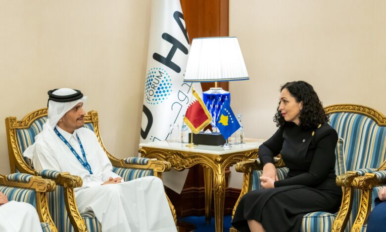 استقبلت فخامة الرئيسة فيوسا عثماني رئيسة جمهورية كوسوفو، معالي الشيخ محمد بن عبدالرحمن بن جاسم آل ثاني رئيس مجلس الوزراء وزير الخارجية، بمقر إقامتها اليوم، على هامش /منتدى الدوحة 2023/ المنعقد حاليا.جرى خلال المقابلة، استعراض علاقات التعاون الثنائي، وسبل دعمها وتطويرها.