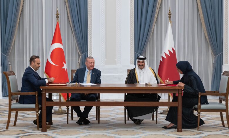 شهد حضرة صاحب السمو الشيخ تميم بن حمد آل ثاني أمير البلاد المفدى، وأخوه فخامة الرئيس رجب طيب أردوغان رئيس الجمهورية التركية الشقيقة، التوقيع على عدد من الاتفاقيات ومذكرات التفاهم بين البلدين، وذلك في قصر لوسيل مساء اليوم.فقد شهد سموه وفخامة الرئيس التركي التوقيع على البيان المشترك للاجتماع التاسع للجنة الإستراتيجية العليا…