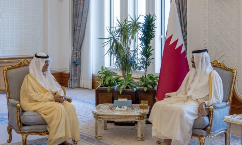 أكد حضرة صاحب السمو الشيخ تميم بن حمد آل ثاني أمير البلاد المفدى، أن مباحثاته اليوم مع فخامة الرئيس إيمانويل ماكرون رئيس الجمهورية الفرنسية الصديقة تأتي ضمن المساعي المتواصلة لبحث وقف إطلاق النار وخفض التصعيد في غزة.وقال سموه، في منشور عبر حسابه الرسمي على منصة التواصل الاجتماعي /إكس/: “مباحثاتي مع الرئيس الفرنسي…